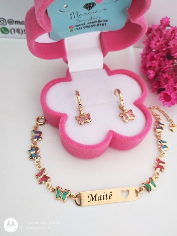 Pulseira+ Brinco Argolinha Chapinha coração vazado