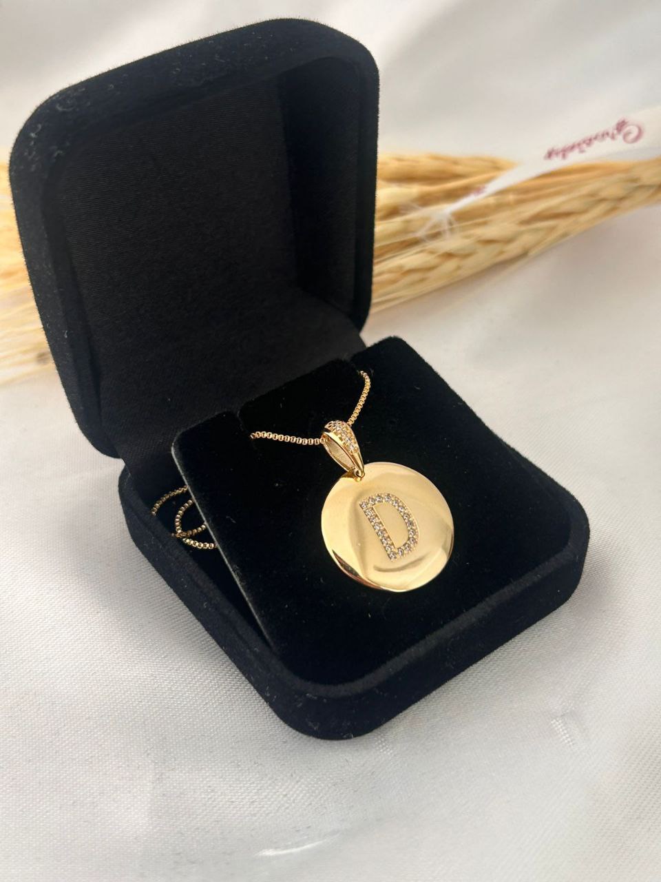 OkGargantilha personalizada medalha inicial cravejado zircônias